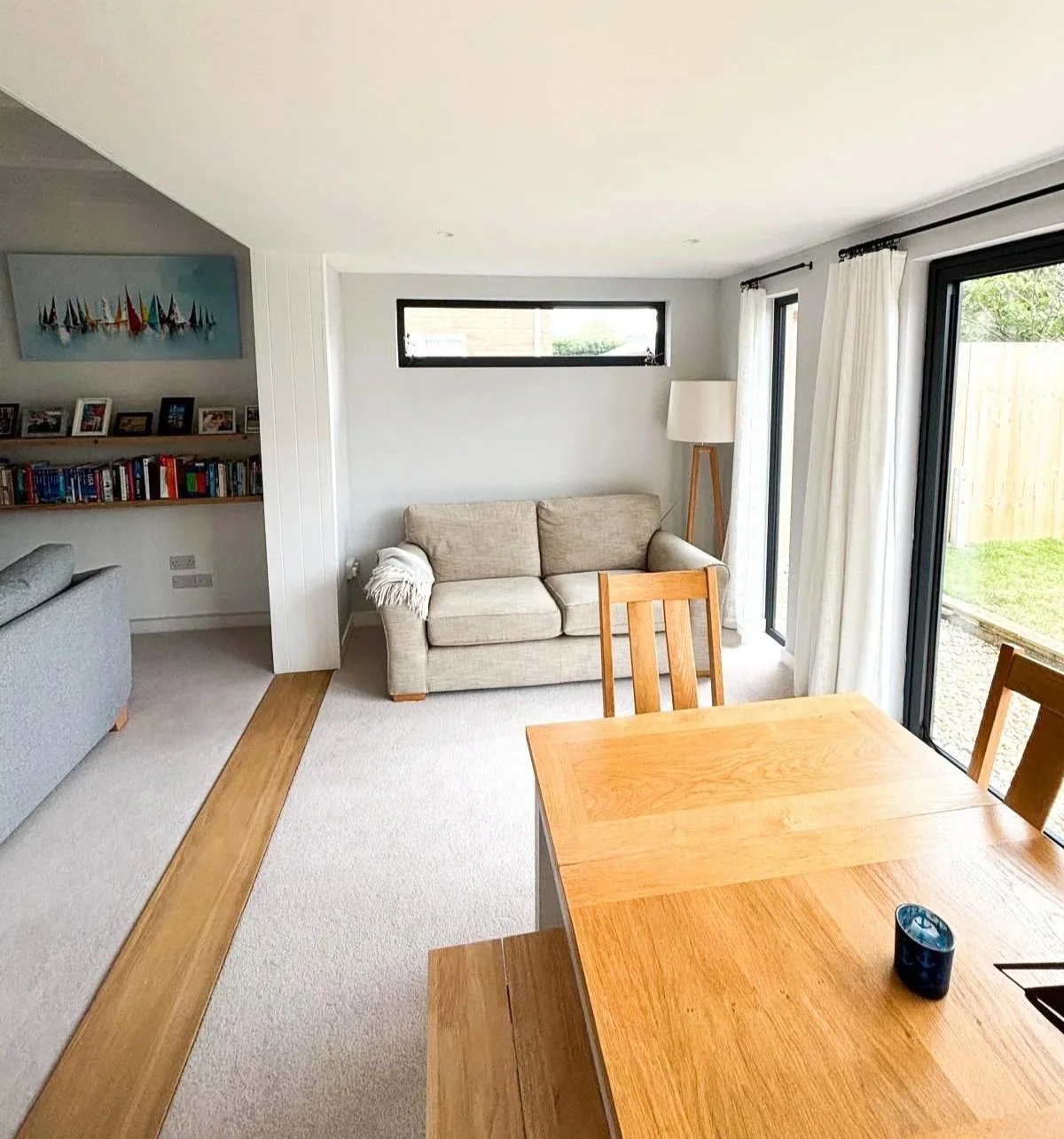 Curtains and new furniture help to make the new space feel cosy and inviting.